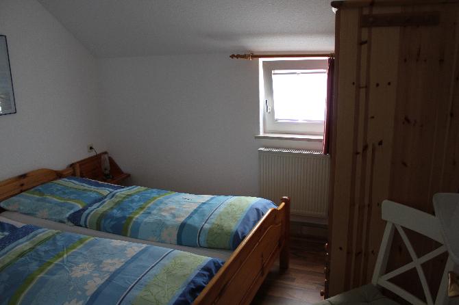 Schlafzimmer mit zwei Betten, davon eins umbaubar zum Kinderbett